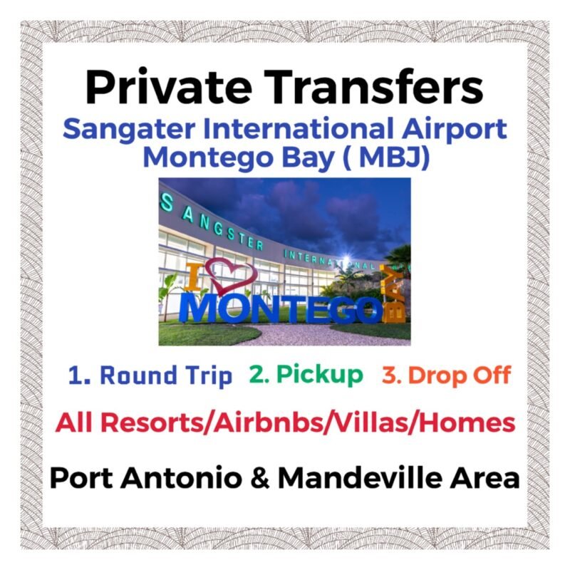Be the first to review “Private Transfer From Sangster International Airport Montego Bay to All Resorts, Villas, AirBnbs & Homes in Port Antonio & Mandeville Area” Cancel reply